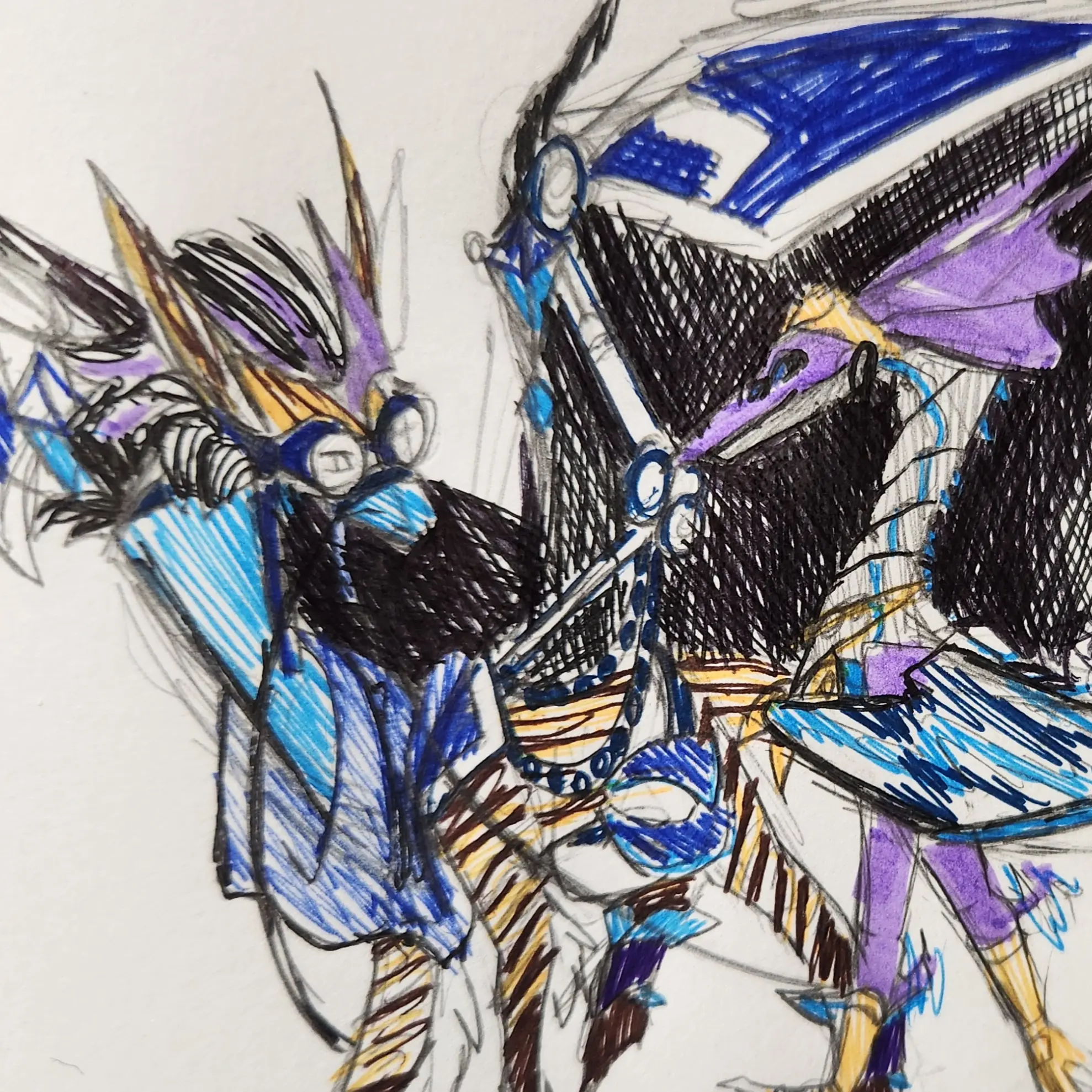 “Detris and Joule” Pencil, Colored Pen, Paper – Flight Rising Inspired